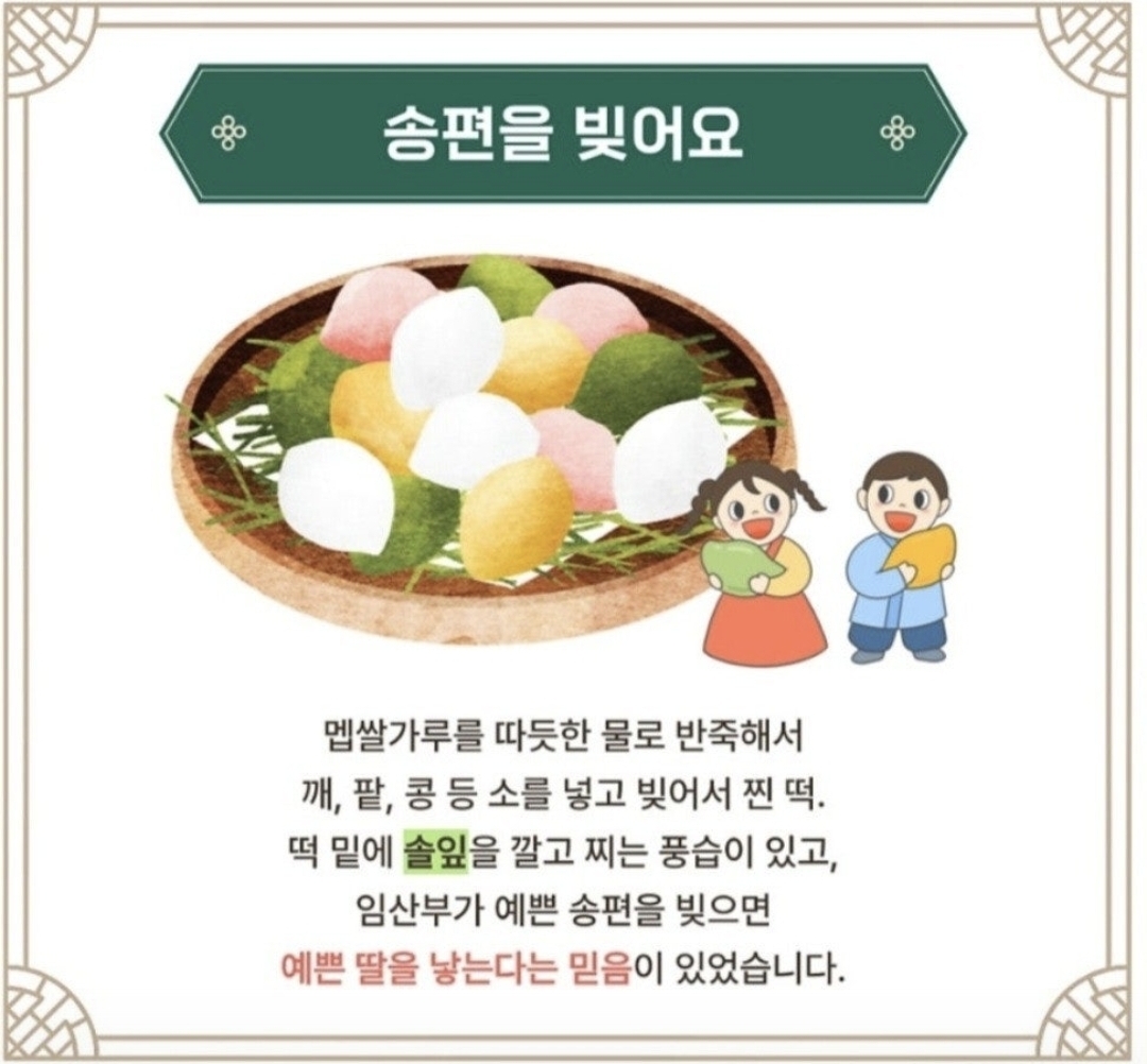 송편은 소나무 송(松)과 떡 병(餠)이 합쳐진