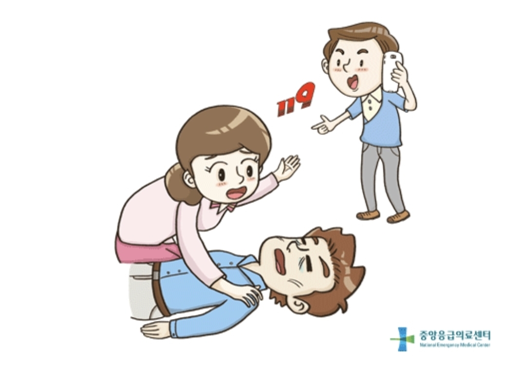 이후에는 30회의 가슴압박과 2회의 인공호흡을 119구급대원이 현장에 도착할 때까지 반복해서 시행한다.